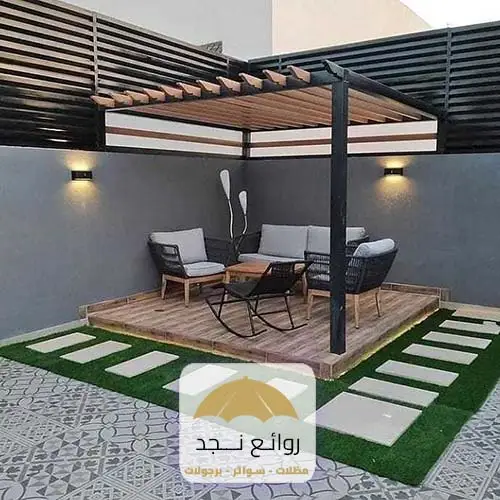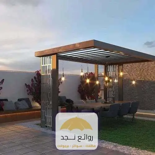 - مظلات حدائق خشبية بالرياض تقليدية ولها مظهر طبيعي، ولكنها يمكن أن تكون ثقيلة وتتطلب المزيد من الصيانة.